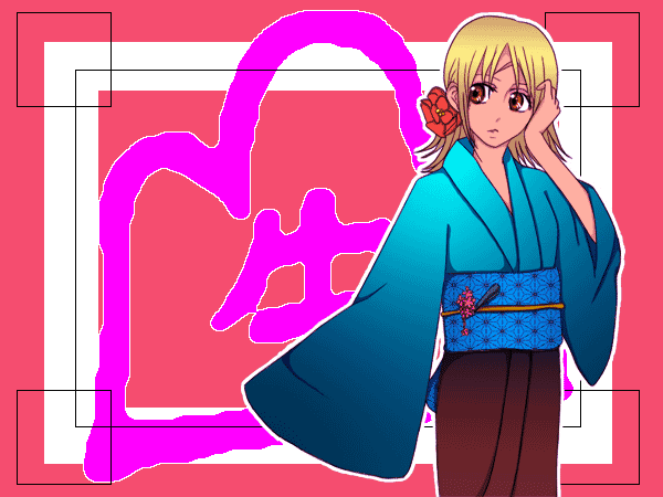 浴衣(着物?)の色はね。。。黒地に赤模様とかピンク系とか青系とか全部二番煎じだから